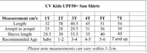 If you need help with sizing please email us at hello@uvkids.com.au